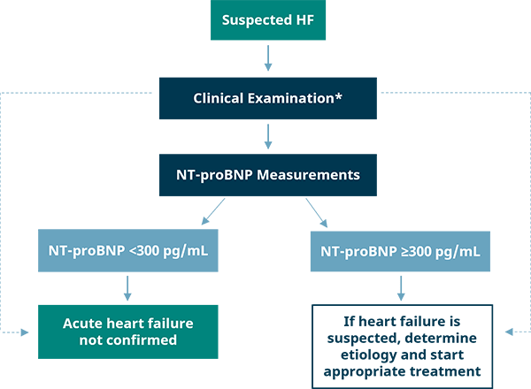 Pokyny pro diagnostiku akutního srdečního selhání doporučují, aby všichni pacienti s podezřením na srdeční selhání absolvovali diagnostické vyšetření s použitím natriuretických peptidů, jako je NT-proBNP, a pokud je to možné, provedli testování jako POC analýzu [4].